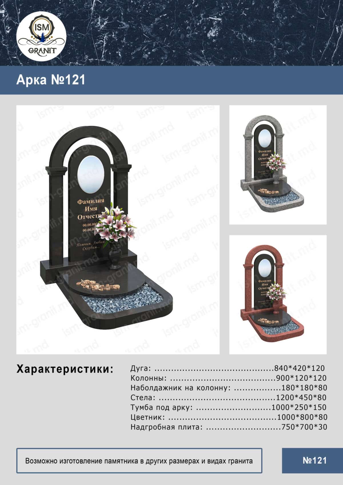 * Дополнительно можно заказать надгробные плиты, вазы, лампады и шары.